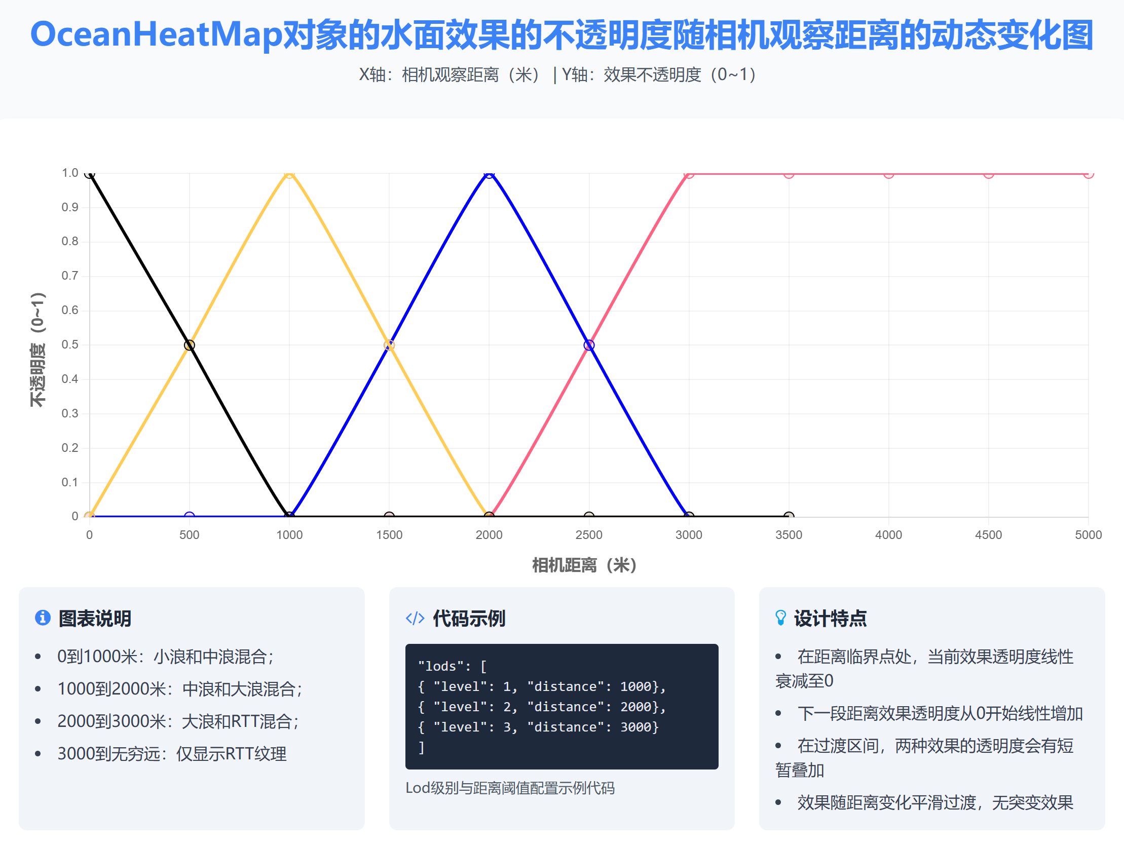 lods (array) 可选参数,流场样式下,流场、远景水波纹、近景水波纹、水面浪花的四个显示距离: