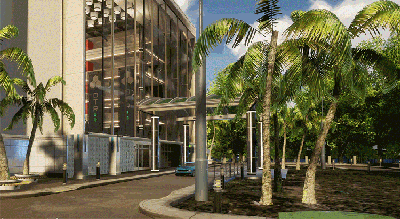 设置雨效。注意:开启雨效前需先设置云层的厚度和密度,效果图: